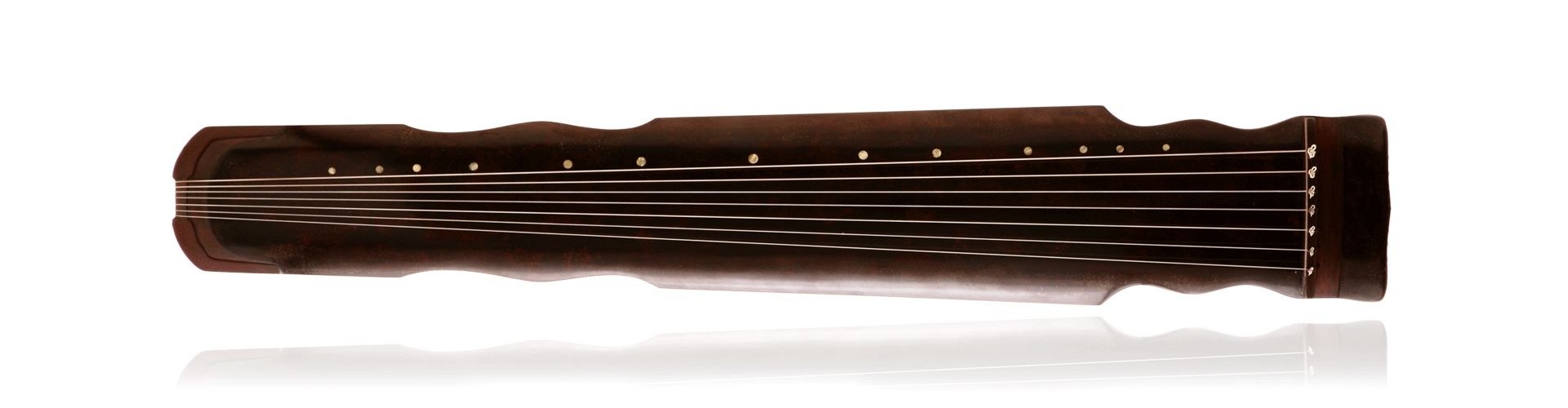 “宣和式”造型来源于凤势式,项腰仍保留凤势式特点,但更着以流线性的弧度处理,即项腰处均为两凹中凸,且从琴额开始曲线内收,额侧微敛,轮廓柔婉秀美,造型浑融统一。宋徽宗独创“瘦金体”书法,瘦挺爽利,苍劲飘逸,舒畅洒脱,富有鲜明个性。由此“宣和式”古琴形制可见其艺术风格之一斑,可谓“天骨遒美,逸趣霭然”。