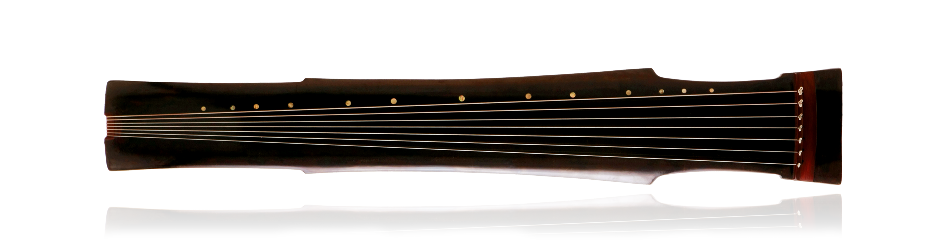 变体鹤鸣秋月,基本造型依仿“鹤鸣秋月”琴式,但在线条上做了更为简洁写意的处理。原式多为圆弧曲线流畅行走,而此处则将曲线一并改为直线,只在转折处施以微弧。自岳山以下为颈,延至琴肩则骤开,颇有大鹏式展翼之风采。琴腰自十徽始,直通焦尾,颇似仙鹤孑立之足,风姿飘逸。此琴音色自然清奇,抚之如临蓬莱幻境,唯见“海山无事,一鹤相从。”(二十四琴品之“清奇”。)