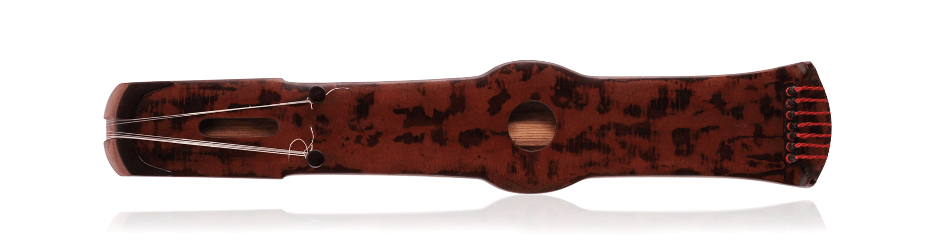 “太古遗音”,师旷式,为唐初贞观年间制造,现藏于中央音乐学院。琴身褐红,通体蛇腹龙鳞断纹;两肩圆鼓,合成满月;龙池正圆,凤沼长圆。琴体造型恢弘,庄严肃穆,凛然盛唐之风。王鹏亲斫的“太古遗音”,精心选用良材,制作细致严谨,斫以明代杉木老梁,髹以上佳传统大漆,蛇腹龙鳞流水断纹,徽镶螺钿,轸悬墨玉。历时两年多方才完成,成琴后音色不同凡响,仿闻初音。其声高古卓绝,抚之可感“超诣”琴品:“心游芒芴,响答风云”,更见司空图《二十四诗品》所云旷达气象:“天风浪浪,海山苍苍。真力弥满,万象在旁。”