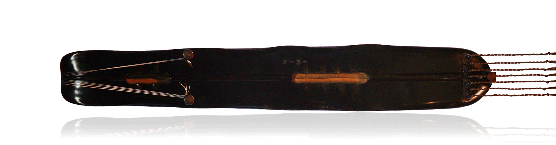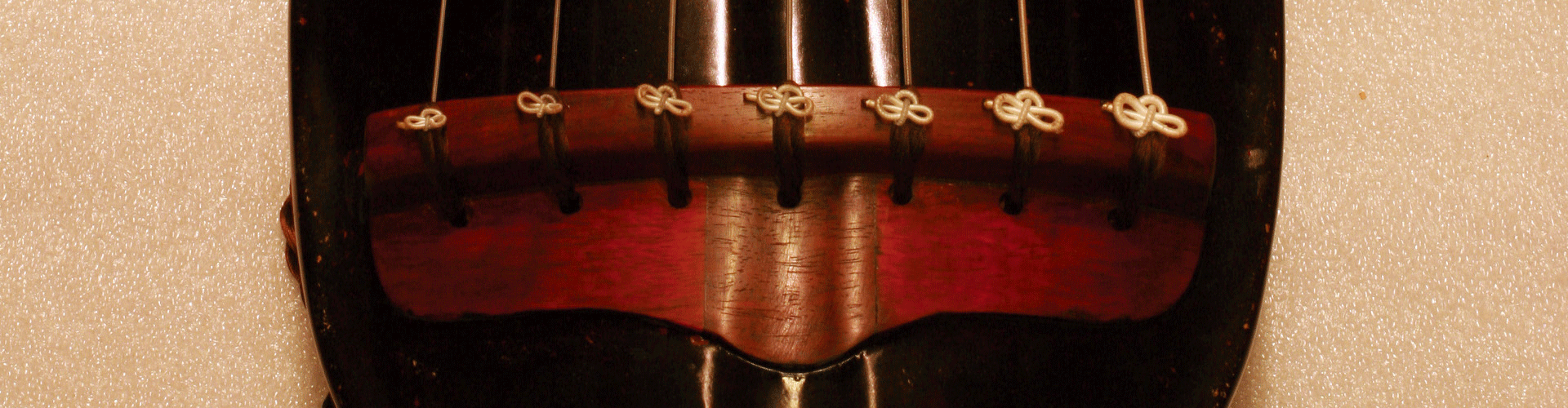 王鹏复斫“蕉林听雨”,精选明代杉木老梁,髹以优质传统大漆,徽镶七彩螺钿,墨玉为轸,岳尾足处皆为小叶紫檀,琴体基本沿袭原琴形制,修身纤薄,姿态生动。为使钢弦、丝弦皆相得宜、音色嘉美,不得已将隐间、龙池、凤沼微作调整。此琴音色静透匀润,抚之可体原琴铭文意境,曰:“庭松踈朗,风和月明。澄神静志,豁达成声。”“沉以神识,发于性灵。天和之感,徽音动听。”又曰:“乾坤其气,金玉其声。道德其人,中和其气。”更感《溪山琴况》之“润”况:“如玉泠泠然,满弦皆生气氤氲。”