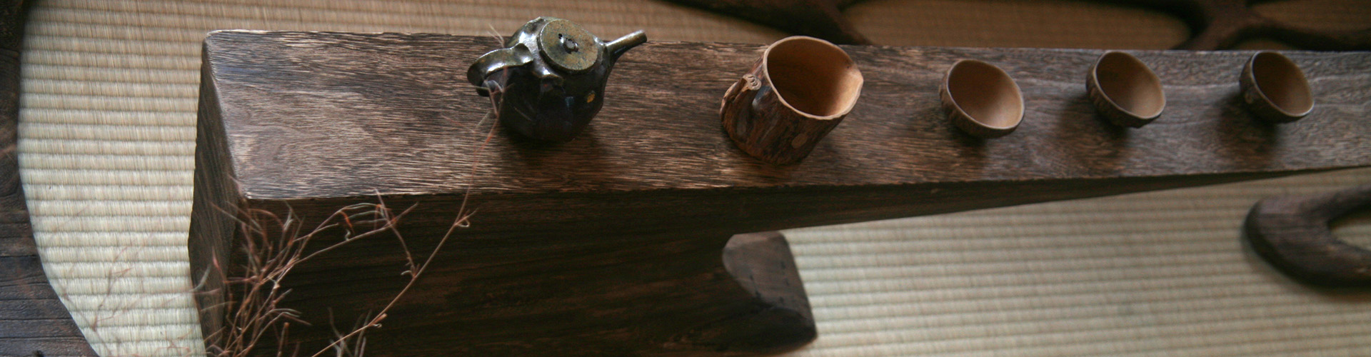 在设计师的手中,木材是一种充满生命力、可刚可柔的造型材料,正如这款三人座的禅茶席,采用木材与榻榻米结合的方式,以及流线型水纹镂刻的手法还原出一个端坐岩边清泉水洼、静听风声鸟鸣、悠然品茗回归自然的情境;水洼形的镂空位巧妙地将三人位蕴含其中,茶台清爽的直线与周边拟于自然的流线形成对比,简洁利落;水生木,而茶道恰是水与木相结合的自然之道的灵魂升华,禅茶一味,可见一斑。