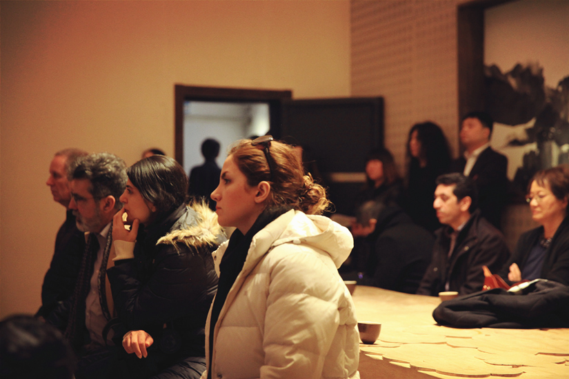 考察期间,北京市文化局非物质文化遗产处处长千容对北京市非物质文化遗产保护的成果和经验进行了展示分享,钧天坊创始人、非物质文化遗产“古琴艺术”传承人王鹏先生向来宾介绍了钧天坊目前的事业范围,并分享了他对于非物质文化遗产以及古琴的理解。他说“非物质文化遗产不是博物馆的艺术,它的技艺与智慧需要与当代生活结合在一起,这是传承和保护的最好的方式。古琴艺术代表的是东方智慧,要与书、香、茶、花等文人生活相结合,在钧天坊,大家能感受到东方文化精神与当代生活的紧密联系。”
