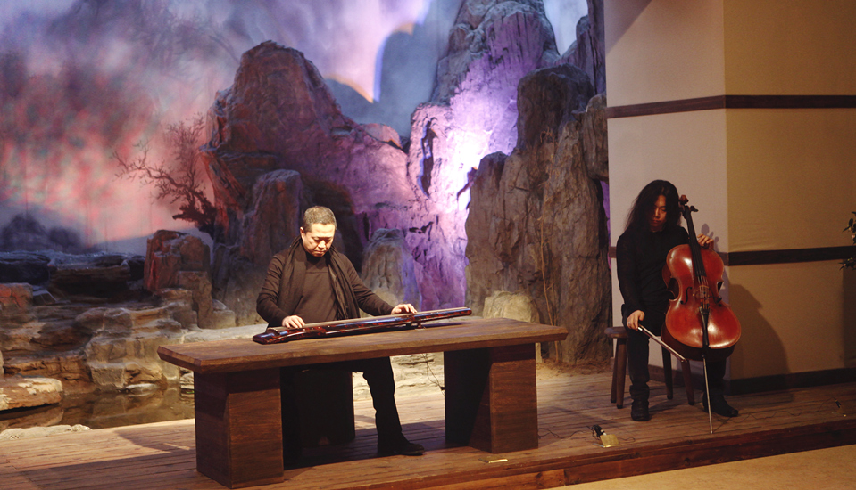 随后,钧天云和艺术家为来宾做了不同形式的古琴音乐演出,古琴独奏、琴歌、古琴与大提琴即兴……古今中西的演绎融合展示了古琴艺术传承的生命力和创新精神。