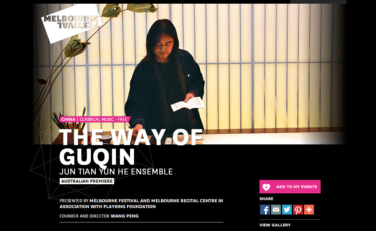 【售票信息】 免费 请参看墨尔本艺术节官网链接:http://www.melbournefestival.com.au/the-way-of-guqin/