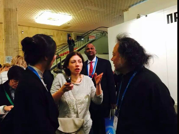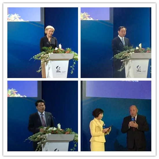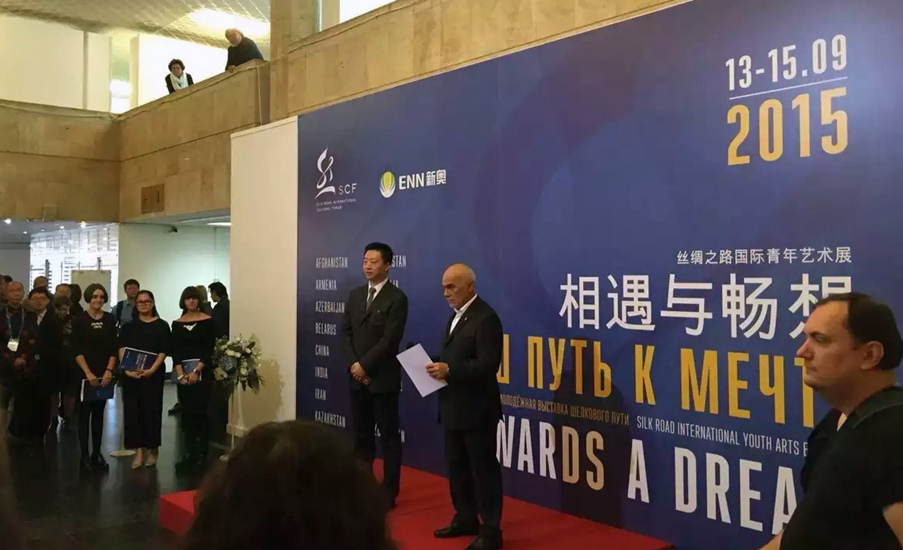 9月14日,“2015年丝绸之路国际文化论坛”于俄罗斯联邦首都莫斯科总统大酒店开幕。开幕式由中国丝绸之路基金会秘书长张杏兰女士和普京总统特使、独联体国际人文交流合作基金会联合主席米哈伊尔.什维徳科伊主持。俄罗斯联邦副总理奥丽加.戈洛杰茨和中华人民共和国驻俄联邦全权大使李辉等各国政要分别致辞。