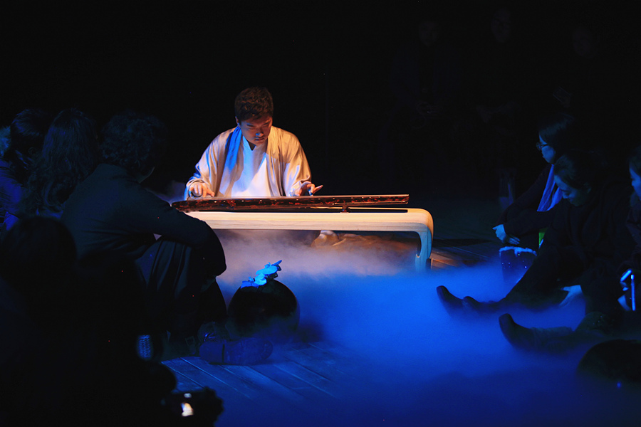 只听琴音响起,古朴而粗犷,清透而澄明,“神人”从天而降,随之曼妙起舞。天人合一,向众人倾诉着神对人的博大宽宏。
