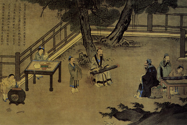 乐曲首段以空弦低音一字一音奏出,庄严、肃穆、宏伟,引导我们进入两千年前的时空,古代圣贤出赫然出现于眼前。第二段富有歌唱性的音乐中温暖、坦然的情感,很好地表达了儒家的“仁爱”的思想。第三段营造了一种平和的气氛,全曲最初呈示的旋律在这里渐渐作变化发展、深化,旋律在勾画一幅幅美好的图景,第四段音乐性格醇和、温厚、柔情……继而逐渐抑郁凝重,富于沉思,直至舒畅、柔美,整曲语气如苦思,如追问,深奥曲折,仿佛看到文王在“有所穆然深思”、“有所怡然高望而远志”的画面。